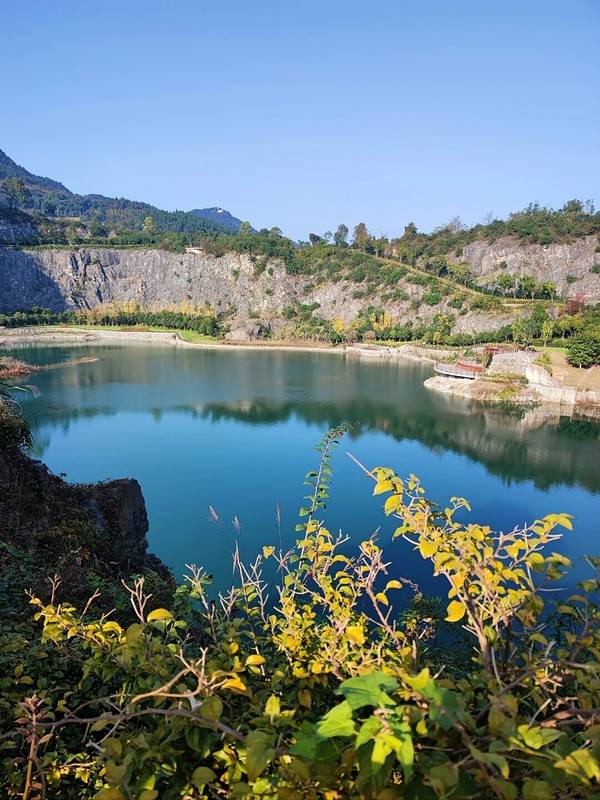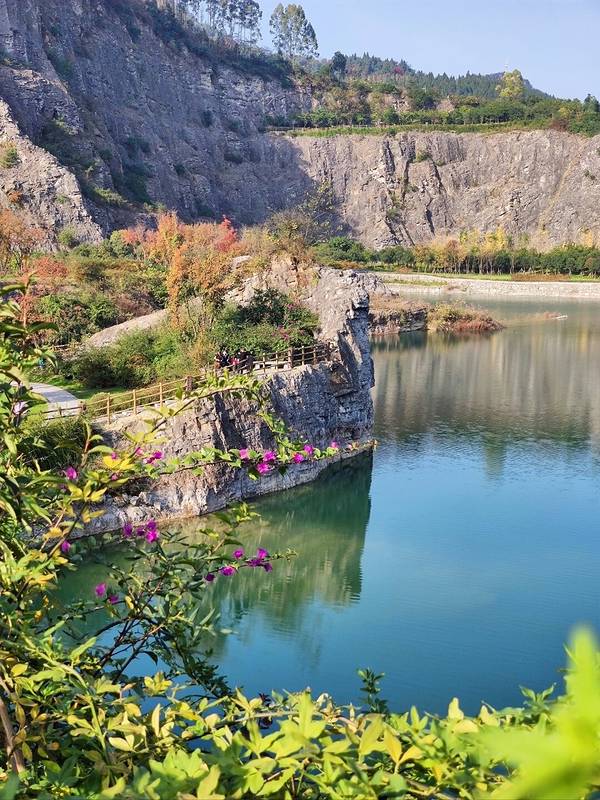 因宝蓝色的水被誉为重庆的”小九寨“,正在打造中的渝北区铜锣山的矿山公园,曾经是废弃的采石场,预计今年5月矿山公园将改造完毕对外开放。现在去,车要停在外面,步行进入施工现场,感受部分绝壁下湛蓝水池的小...
