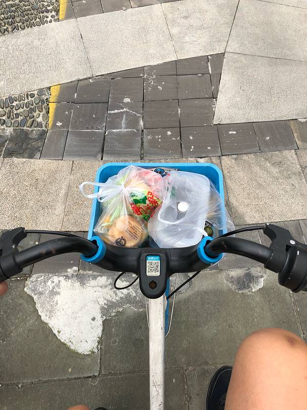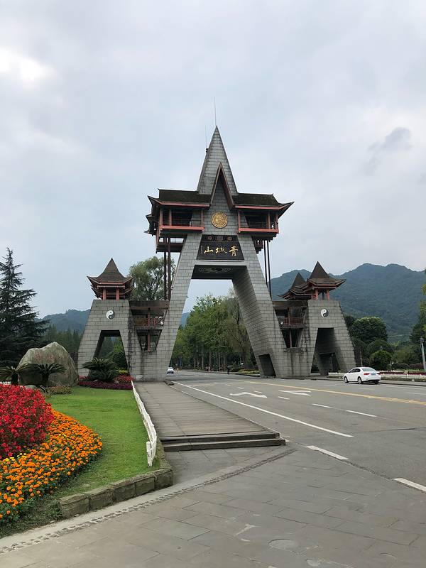 车站对面是一排建筑规整的商业二层小楼,有商店、旅社、饭馆等,在手机上查找着住宿,发现附近有很多别墅,价格也很亲民,所以花了300左右的价格定了一家设计师别墅的民宿的一间房,图片上看着很好,完全豪宅的模样,于是步行前往,却兜兜转转怎么也找不到位置,正巧30min内可以免责取消行程,于是取消,又订了一家民宿。意外的是青城山居然有小蓝单车,于是骑车前往旅馆,车筐里满是为爬山准备的水果和干粮。青城山的具体行政单位是县还是镇?不大清楚,只知道在这里最大的感受这是一个以青城山而存在的地方,街上的行人很稀疏,甚至可以说很少能看见行人,眼前及耳畔遍是绿植及鸟鸣,像极了大自然原本的模样,但是期间不时穿梭的汽车和不远处的别墅及广场上经人精心修整过的草坪和各色花卉,告诉你这里是景区。在站前二层小楼的前边一条街就是居民区了,期间要穿过一个广场,从广场处就可以看到整个地区大致的地形脉络,像东即为某个村落,向南及至青城山,向西则抵达都江堰,向北则通向火车站。所住的民宿就在广场与青城山之间的一条街上,那里应该就是生活区,街边满是旅馆民俗及餐厅,即便到了生活区路上也少见行人,可能是我到的时间正赶上午睡时间,生活区也静得出奇,在前台登记时因为房间远没有住满,于是免费为我升级了房型,感谢!150/天的房费,住在这样的房间里真的太超值了,在居住楼与街道之间还有一条大约十米见方左右的院子,小池塘里养着鱼,几株长势大好的盆景错落四周。