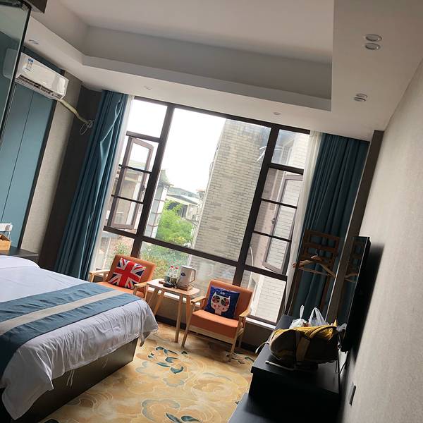 车站对面是一排建筑规整的商业二层小楼,有商店、旅社、饭馆等,在手机上查找着住宿,发现附近有很多别墅,价格也很亲民,所以花了300左右的价格定了一家设计师别墅的民宿的一间房,图片上看着很好,完全豪宅的模...