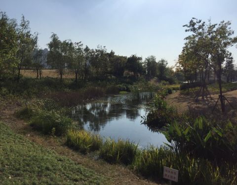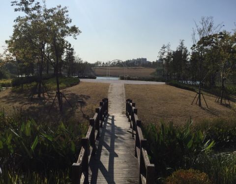 ...三号线的终点站交界处,里面都是新栽种的植物,因为是免费公园,所以很适合附近居民遛弯,跑步,锻炼