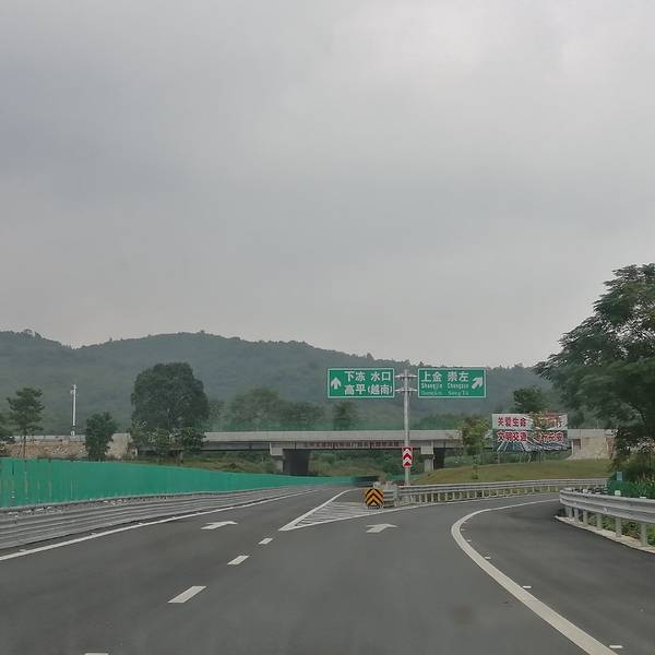 南宁到到龙州开通了高速公路,是南宁到水口口岸中的一段。这条高速公路风景不错,车也太少了吧。有了这条高速,南宁到来自才180多公里,2个半小时内可以到达南宁市区了。