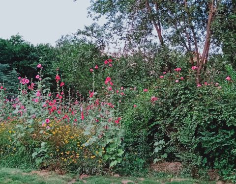 鹅卵石铺的小路漫步走在上面,还能起到按摩的作用,美丽的花花开的非常鲜艳,像是在欢迎每一位朋友的到来