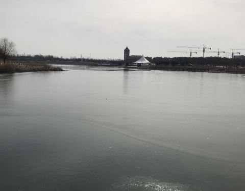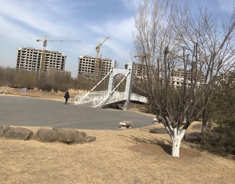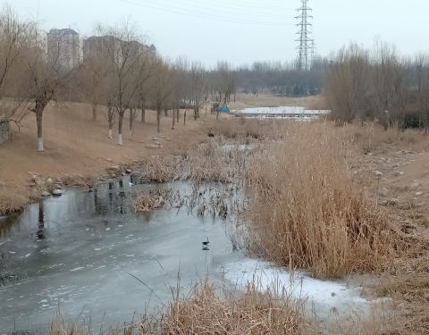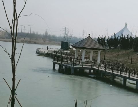虞舜公园还是不错的,有非常漂亮的吊索桥,非常壮观,可以在上面享受那种晃晃悠悠的感觉。大冷的天,河面上已经结冰了,还有野鸭子在哪里跳来跳去的好像是寻找食物吃。玩的非常开心