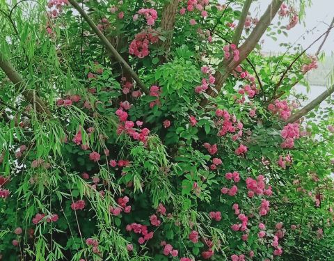 下午三点半来到虞舜公园游玩 ,几天没来变化好大呀,一片一片的玫瑰月季开的非常绚丽夺目。五颜六色,五彩缤纷漂亮极了,再往前走一段路就能看到好多的蔷薇花爬上了树,忍不住驻足欣赏了半天。陶醉在花的世界里了。