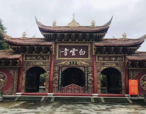成都新津白云寺始建于明代,占地七十二亩,由山门殿、玉佛殿、钟鼓楼、大雄宝殿、祖师殿、地藏殿、财神殿、燃灯殿、观音阁、居士楼、往生堂以及斋堂组成。