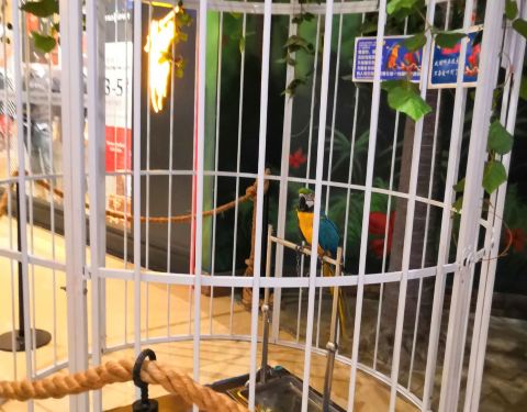 ...不过其实这里确实很适合小朋友过来看一下,整体的布置很自然,很森林风光,他们家的那只鹦鹉太好玩了