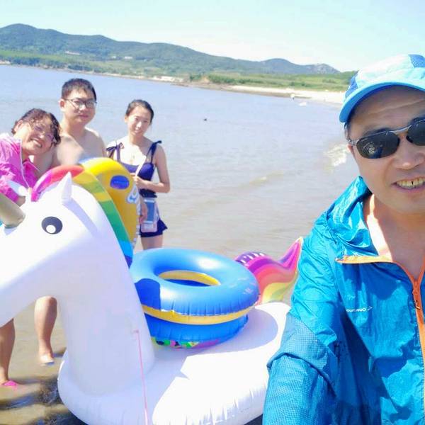 坐车10多分钟就到达了旅店。旅店门口精神头旺盛的老妈沙滩合影沙滩跟老妈合影沙滩沙滩边上的礁石石城岛卧龙滩老婆靓照石城岛卧龙滩石城岛卧龙滩沙滩上的鹅卵石石城岛卧龙滩中午11点30吃中午饭,吃的还是可以的。午餐吃完午餐休息一会就到海滩上玩了,以为8月末水会凉,但是大连温度还是挺高的,赶上退潮我姥都可以下水,退潮了可以走出去几百米,由于退潮水不是很干净。(感觉我们辽宁的海还是不如山东的水好)海边戏水这回旅行特意买的独角兽沙滩合影合影独角兽还是挺咋眼的。合影躺在马上还是挺舒服的。合影老婆牵着马拉着我沙滩戏水老婆靓照沙滩戏水老妈拉着姥姥。沙滩戏水我俩玩到下午3点多,回旅馆洗漱一下。老妈他们下午一直在玩,体力真好。沙滩来张影子照片沙滩在礁石上抓小螃蟹,老婆抓这个厉害,老妈换套红衣服。礁石抓螃蟹玩到5点30,开始吃晚饭,虾爬子挺不错的。晚餐吃完晚餐,休息了一会,然后出来看月亮,赶上月圆真点正。圆月外面有海风,老婆怕冷穿的比较严实。圆月月亮在海上铺了一道金路。圆月创意照片,请忽略我的姿势。创意照片老妈和老婆的合照创意照片可爱的老婆。晚霞在海边能看见天上的繁星。晚霞夜晚的旅店。旅店夜晚的大海晚上旅店有烟花和卡拉OK,一般提供到10点。烟花晚上10点多我们就休息了。(我后背都晒的通红)