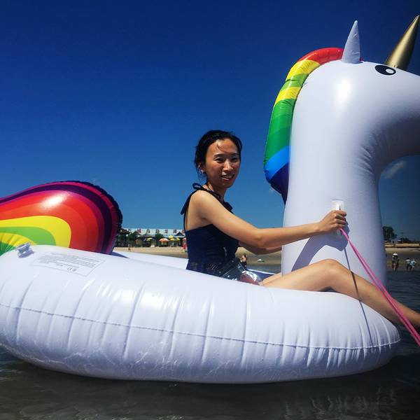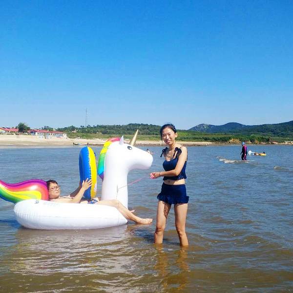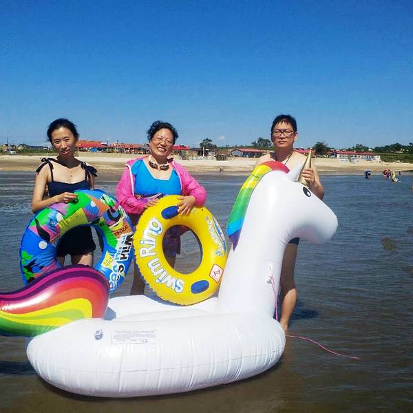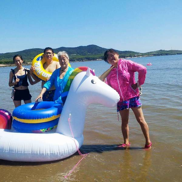 躺在马上还是挺舒服的。 这回旅行特意买的独角兽。老妈他们下午一直在玩,体力真好。 合影。 合影