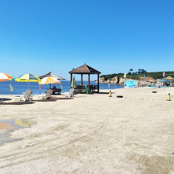 石城岛卧龙滩度假村,就建在海边,320元一晚的简易海景房,出门就是大海,景色很美。店家在门口建了凉亭,放置好了躺椅,还在门口设立冲脚的水龙头,在他家住宿,这些就可以免费使用,真的很方便。