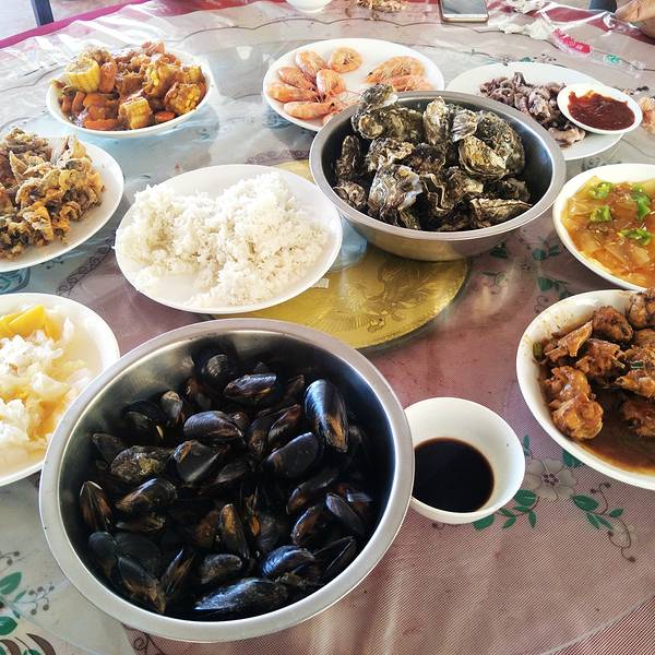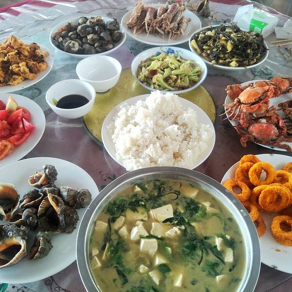 吃的太次了,海鲜就那么一点儿住的也不好,朋友们,还是别选择去他家了,太骗人了,东西还不够吃