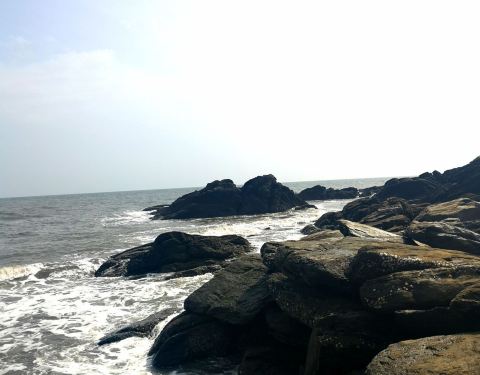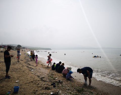 大连庄河市石城岛是一处不错的休闲旅游地。上岛前一定要联系好住处。首先乘坐20分钟左右的渡轮上岛。下船后,有度假村的老板开车来接我们。这里面积挺大,海水还是很清澈的,退潮的时候,可以捉螃蟹,海螺,特别适合带着孩子来玩。我准备不充分没有赶海的工具,只能用手在岩石缝隙里捡些小海螺玩了。