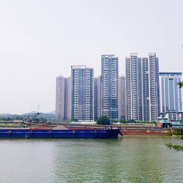 在珍之宝吃宝的了点心,很想消消食,穿过马路走到江边散散步,这里一条长长的江边绿化带,叫做南岸公园。南岸公园真的不大,有风的时候在这里走上一小段,欣赏容桂水道上船来船往。东边可以看到容桂大桥,西边就是渔人码头,一个非常文艺范的好去处。容桂水道非常的繁忙,船来船往不息,能看到好些都是运沙船。这就是滨河路漂亮的一段了,绿树茵茵。