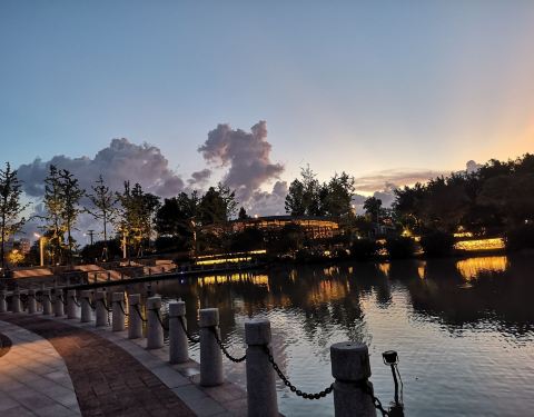 家门口的公园经常锻炼跑步好地方,空气清新绿树成荫 风景优美 是市民休闲放松好地方 这里有很多茶座和西餐厅,很适合年轻人周末放松好地方