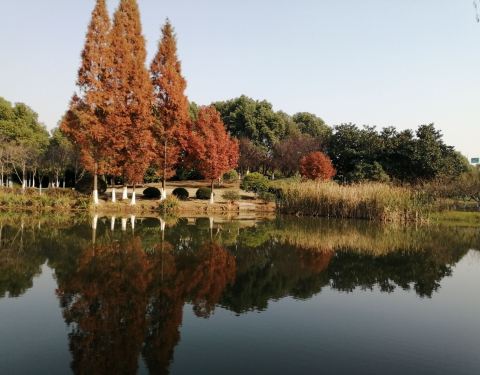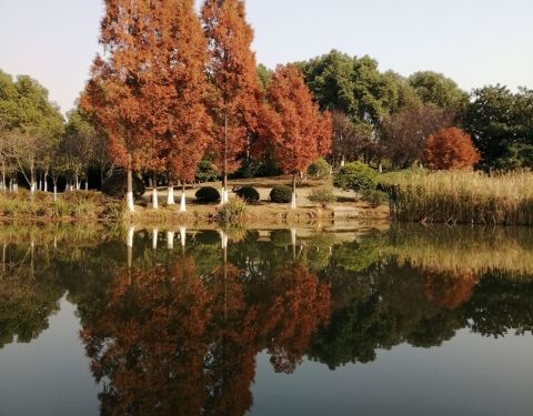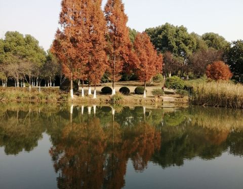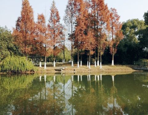 一棵棵笔挺的水衫直入云霄,根部浸在池塘里