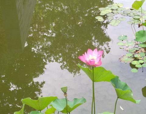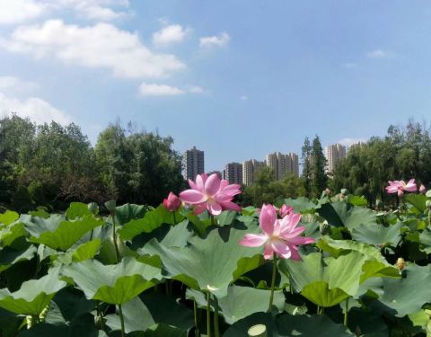 夏季李村河苏家站开满荷花,沿线风景很美,蓝天白云倒映水中,荷叶青青,荷花安静的绽放,如穿着粉纱,白纱衣裳的姑娘在丛林里纳凉,让有些燥热的夏天变得宁静
