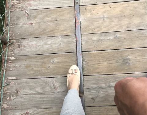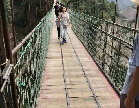 作为一个有恐高症的人来说 还是挺吓人的 最后还是克服了心理障碍 走了一个来回 就怕有人步伐走的太重 桥会晃 走到中间最吓人 不过景色很不错 很漂亮