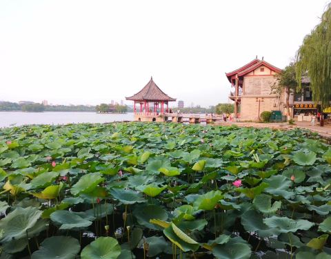 不愧是泉城,雨荷亭值得一看,皇帝来过得地方。你还记得大明湖畔的夏雨荷吗?体验一下那种意境,哈哈!周边都是湖水,还可以乘船到对岸