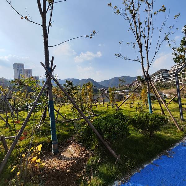 离着姜哥庄基都教会不远的地方,有个小公园,没想到这里还有一个宝藏绿地公园啊,在去缴供热费的路上偶然发现的,真的是特别的惊喜,一个环境还算不错的口袋公园吧。 [糖果]位置:海信依云小镇格林北门一出来,过一条小马路,往左边一走就到了,很近便,周围的居民都可以来转转。 [糖果]设施:这个公园像是刚刚建的,合还都很基础,知识目前种了一些树,设施什么的都还没有,希望下一步能更加完善一些吧,毕竟住在这的人也不少啊。