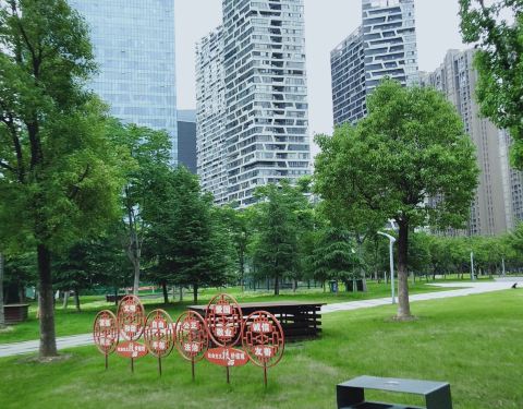 位于奥体中心北边,很大很大的一片绿地,市民休闲、儿童嬉戏的好地方!