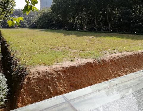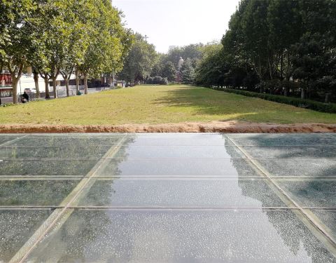 土堆旁边设一大玻璃罩,人们走在上面可以看到下方的遗址,只不过当时刚刚雨后升温,铺满了的水珠阻挡了视线