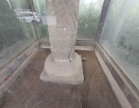 石刻风化严重,虽在玻璃房里,离马路近,高人一头的草包围着,不太容易发现,这对辟邪小巧,观赏价值不高,或许成为不被重点保护的原因.