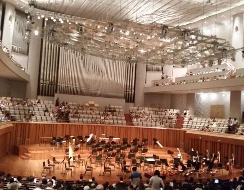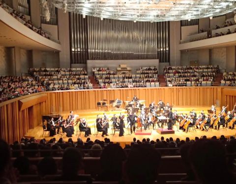 音乐厅室内空间差不多和电影院一样。感觉很高端的样子。门口入场的地方有工作人员查票,如果开演了还没有到的观众,会被拦在门外,等中间休息的时候才能进。不过还好门口有屏幕,可以看到里面演出的实况。大厅内分两层观众席,位置不同,演出票价也不同。在里坐着感觉很舒服,温度湿度刚刚好。演出期间,观众都很安静,秩序很好。因为演出过程不许拍照,有拿出手机拍照的人,工作人员会用激光笔指着手机,会有一个红点在点在手机上。不足之处在于厕所比较小,人多的时候排队,也不太干净。卖水的也少,中场休息自动售货机前都要排队。