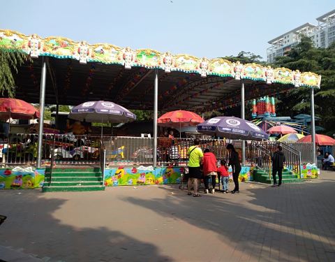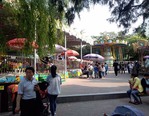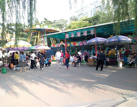 郑州紫荆山公园一儿童游乐场是紫荆山公园西区的一个重要的组成部分,儿童游乐场有一些中大型的游玩设施可以供儿童们游玩,旁边还有一些手工活动可以参加,都是家长带小孩一起来的,气氛很好的。