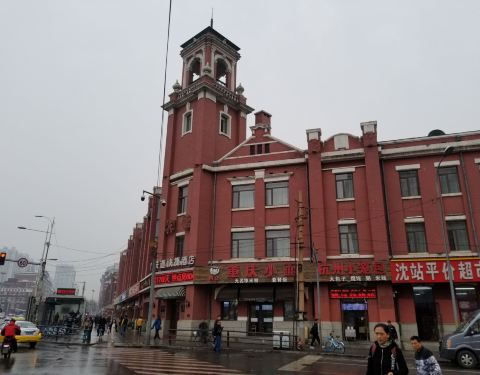满铁事务所旧址就在沈阳火车站对面,一幢红砖建筑非常显眼。看了介绍才知道它的建筑师是日本人,安妮女王式建筑风格。因建成于1912年饭店。只是感觉现在保护的不好,一楼全是商铺,乱七八糟样子。