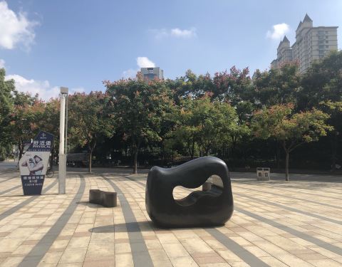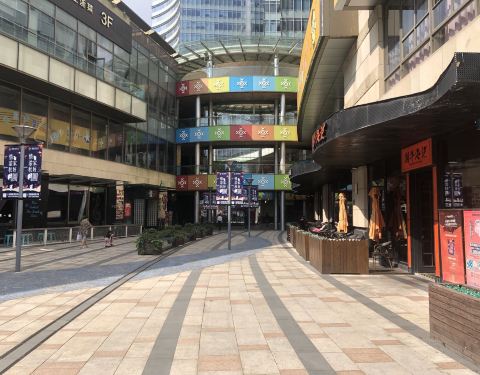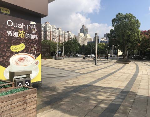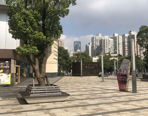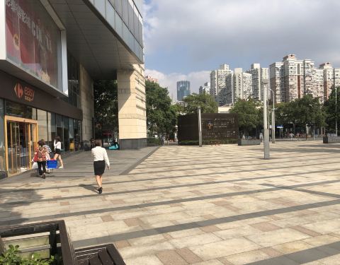 以前这里叫“海外滩”,现在则是黄浦绿地缤纷城。很大一片空阔的场地,往北可以望见打浦桥Skyway酒店的天顶,往西则是缤纷城内的一幢幢有连廊相连的楼宇,往东则是南园公园,环境非常好。