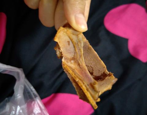 晚上买的脆骨 我想说 都变成骨头了 因为晒干了 咬不动