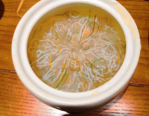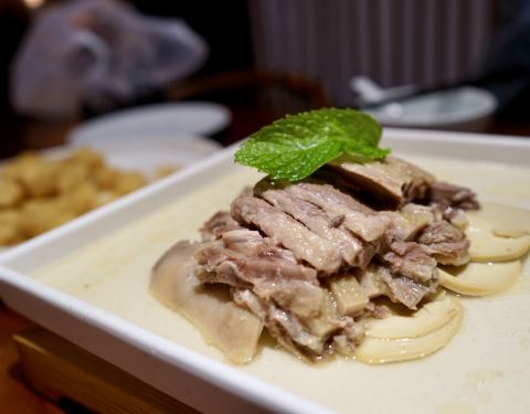 等菜的时间稍长,第一个上的是盐水老鹅,肉质不错,有点小咸,一口接一口吃下来竟然顺口了。 最推荐的是杨枝甘露,没想到是加冰的,没有耐住香香甜甜的口味,一不小心吃光了…… 其它菜品总体是不错的,用料新鲜、精致,鲜甜余香,我喜欢。第一次体验淮扬菜,在这古典又江南的餐厅吃饭,心很宁静,果然人间至味是清欢。。