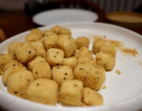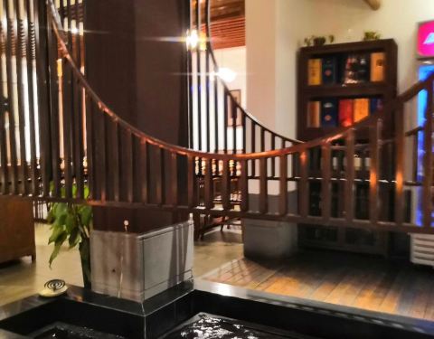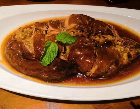餐厅位于扬州大学瘦西湖校区里,是非物质文化遗产淮扬菜传承基地,同时也是虹桥修禊文化申遗基地。室内外的设计都很高雅,外部以石为元素、内部以木为元素,富有现代感。店内的八宝葫芦鸭是淮扬菜里知名的功夫菜,整鸭外皮完整没有破损,上色均匀,在灯下泛着油润的光泽,令人食欲大增。