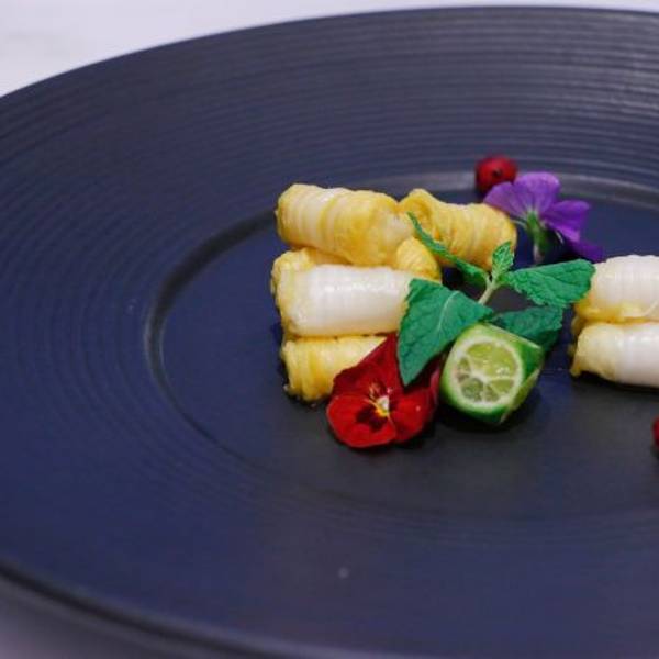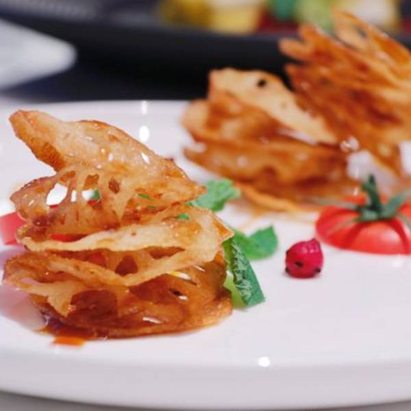 一直误以为会选址在郊区的临江位置,没想到在市区夹江边畔。水沙涟,一品蒋府私房宴,一键还原民国菜。 荔味据说是老佛爷(非当代佛爷)吃宫保鸡丁时感叹口感晒荔枝,现在,荔味是台湾大厨对宫保的另一种叫法。而樱桃是当时对田鸡的雅称,田鸡腿浑圆似樱桃,入口质滑爽口,赛比樱桃。少油将完整红辣椒煸香,加酱油乌醋等搭配,荔味还有淡淡的辣椒香温润清甜啊。 据说蒋公儿时贪吃冰块,牙口不是很好,饭菜也会做得软烂易消化。荔浦槟榔芋和鸭肉的荤素结合,看似朴实无奇,实则是一道讲究的功夫菜了。单鸭肉就文火炖煮五小时,粉嫩咸香咸酥有余味。 豆酥银鳕鱼是一道张大千甚爱的名菜。喜欢食鱼的朋友一定觉得鳕鱼很常见,但配上豆酥就是另一个清奇的境界了。经过秘制发酵的豆酥香气四溢,与清淡柔嫩的清蒸鱼肉相搭口感分明,出于惊喜。