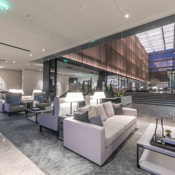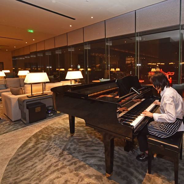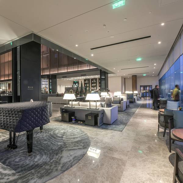 ... 一走进大堂 雄伟壮观 , 大堂吧面对夹江(长江) 风景不错 , 点杯饮料配上甜点 ,可以的