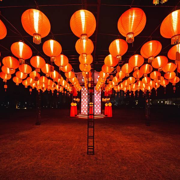 大堂吧里,一架钢琴弹奏出铿锵的音符,在富有节奏感的旋律中夜幕慢慢降临。走出大堂吧是一片草坪,也是是举办室外婚礼的场地,灯笼亮起来了,火红的暖色打破了夜的冷寂。涵碧楼的夜晚宁静安逸,灯光倒映在水池里...