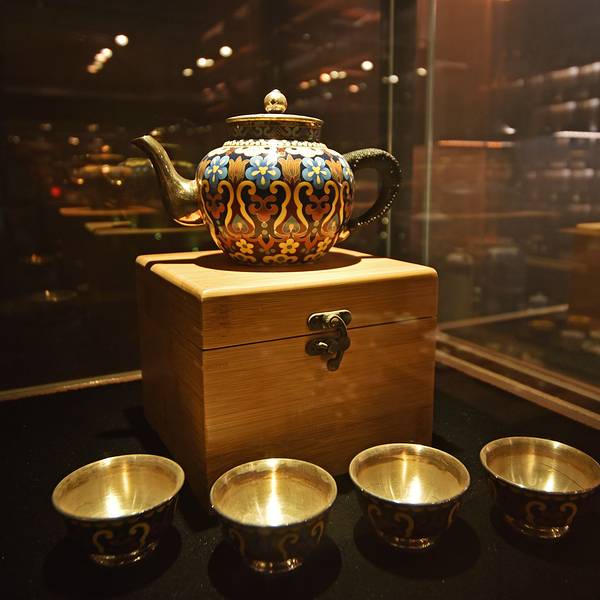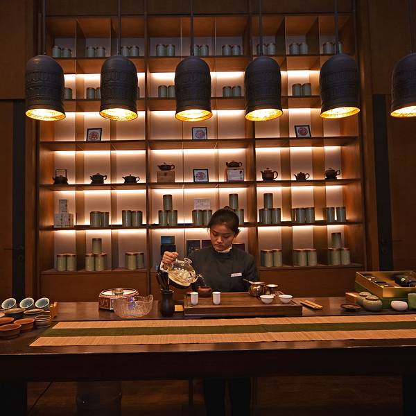 放下行李,短暂的休息之后下楼来到180度全景大堂吧,一杯香浓的咖啡,精致的甜点开始了下午茶。大堂的公共卫生间里备有毛巾,尽显人性化的体贴。“乌龙茶,亦称青茶、是中国几大茶类中独具鲜明特色的茶叶品类。台湾高山众多、生态环境优良,为茶叶的生长提供了得天独厚的地理优势。我们都听说过“云山雾绕出好茶”,台湾的高山,平均海拔都在1000米以上,高海拔保证了茶叶远离污染,云雾弥漫有利于茶树合成更多的生物碱和茶多酚,保证了茶叶的鲜爽和丰富的营养物质。在南京涵碧楼,我们欣赏了一次乌龙茶茶道展示,茗香回味悠长。整个流程共有18个步骤:备具迎宾、玉泉吹花、叶嘉酬宾、孟臣淋漓、内外加温 、仙泉浴盅、温闻香杯、乌龙入宫、洗净尘缘 、高山流水、春风拂面、重洗仙颜、凤凰三点头、分成香露、夫妻和睦、天水合一、出水芙蓉闻幽香、敬奉茶茗请用茶。大堂里还有一个精品馆,里面的各式商品琳琅满目,工艺精致,造型独特,吸引我们驻足很久慢慢观赏。