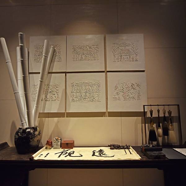 回到大堂,一转眼看到了一处墨香诗韵的书画角,给喜欢挥毫泼墨的书画爱好者一块施展的天地