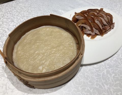 作为苏州第一家全聚德,整个装修很北京,服务员也带着北京口音,正宗🌝一只烤鸭可以片两盘,配两屉卷饼,和大葱、黄瓜还有烤鸭酱包一起。