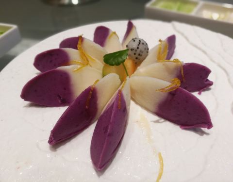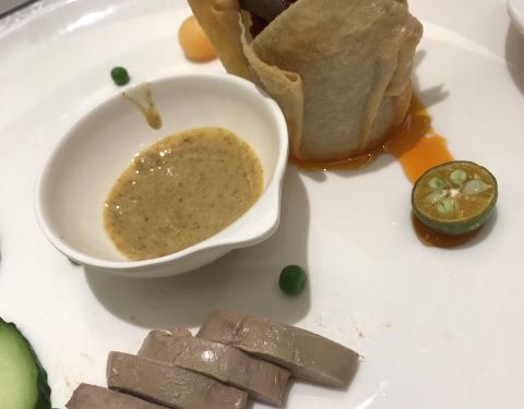 以前在北京吃过两次全聚德,印象中好像就只是吃了烤鸭,虽然味道不错,但是性价比不高,时隔多年,在苏州再次品尝全聚德,感觉好很多,虽然烤鸭仍是主角,但其他的菜味道也不错。咖喱锅巴是泰式的黄咖喱,很合我的胃口。土豆合紫薯结合的一个冷菜造型合口感都很好。
