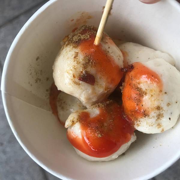 从日光岩出来别走到北面商业区去吃饭,就往菽庄花园走,一路上都有吃的,推荐去这家吃,本身是大老板别墅改造,也算是个景点,吃饭风景很好,内部也可以参观,美团的两人餐真的丰富到惊呆,这可是景点好位子好饭店,怎么这么便宜!!! 黄鱼、古早肉、黄瓜手握、煤球饭、送的糌粑小吃、还有个蛤蜊冬瓜汤和蔬菜,再叫了芭乐汁一大罐,两个人吃撑了路边买的墨鱼丸,10元7个,挺好吃的,吃完很饱,我就在这个状态下又去吃了黄家花园的中饭。。。。