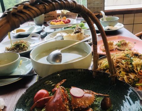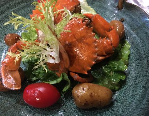 黄家花园餐厅占据了鼓浪屿极好的位置,就在前往菽庄花园和钢琴博物馆的路上。这次的上有:干煎膏蟹、 蜂窝拌饭、竹荪文蛤汤、粉丝蒸黄金贝、凉拌海蜇皮、当季时蔬。干煎膏蟹很饱满,香喷喷;蜂窝拌饭就是蜂窝造型的海鲜饭,不习惯海蛎的人可能觉得略腥;竹荪文蛤汤清淡,可以调节一下重口味的膏蟹;粉丝蒸黄金贝有点偏干;凉拌海蜇皮很炒时蔬菜虽普通,味道还不错。餐厅服务员都很热情周到。
