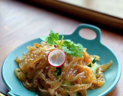 「凉拌海蜇皮」强烈推荐的开胃小菜!蟹膏很多,蟹肉甘甜,蟹壳是酥壳的~配菜小土豆糯糯粘粘的也不错吃