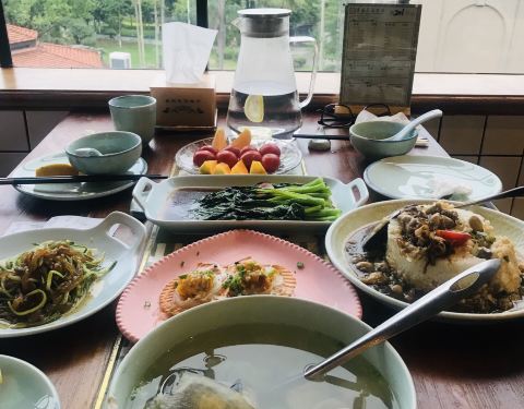 从日光岩出来别走到北面商业区去吃饭,就往菽庄花园走,一路上都有吃的,推荐去这家吃,本身是大老板别墅改造,也算是个景点,吃饭风景很好,内部也可以参观,美团的两人餐真的丰富到惊呆,这可是景点好位子好饭...