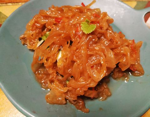 凉拌海蜇皮很炒时蔬菜虽普通,味道还不错。蜂窝拌饭就是蜂窝造型的海鲜饭,不习惯海蛎的人可能觉得略腥