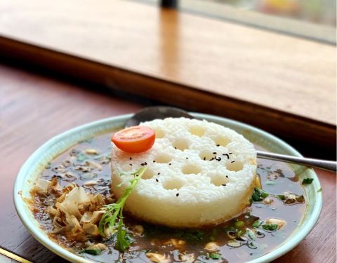 黄家花园餐厅很好找,位于鼓浪屿菽庄花园前面。「招牌拌饭」蜂窝拌饭是将饭蒸成蜂蜜型,酱汁海蛎拌饭吃