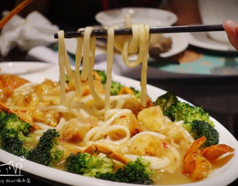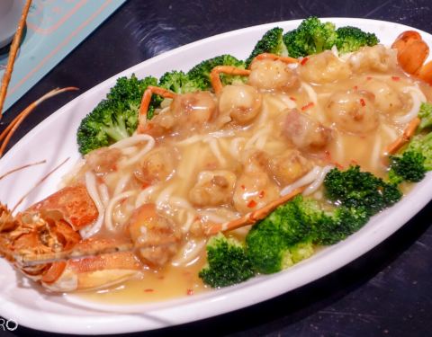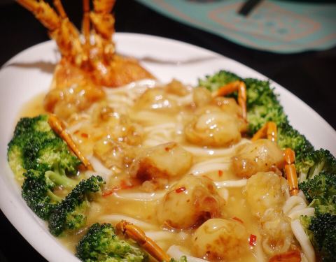 摆盘霸气,龙虾肉吃起来很结实,底下是龙虾伊面,吃起来挺有劲道的。