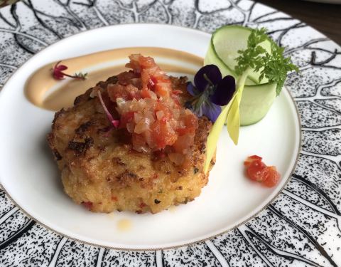 「法国黑鳕鱼饼」 比较大的一块,口感不油腻,搭配的酱汁很开胃。不仅摆盘颜值高,口味也是相当好