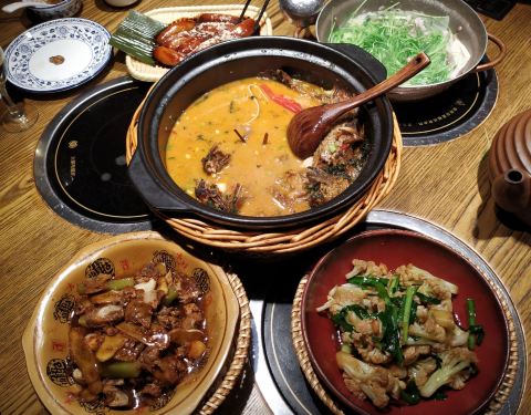「罐罐牛腩」看到店门口的海报感觉很不错的样子,果断点了。开罐方式很特别,体验到了湘西文化~罐罐里的牛腩炖的很烂,萝卜很入味!服务员介绍说罐子都是一次性的,敲开后就不能给下一个人用啦,感觉有点可惜…… 「土萝卜干炒土腊肉」萝卜干很硬咬不动,土腊肉很好吃,肥瘦相间,却一点也不腻! 「土司酒大碗花菜」很好吃!一点点辣,没有酒味,放了孜然提香,很下饭! [环境]装修很有特色,进门后一秒穿越到湘西。 [服务]上菜速度快,穿着民族特色服装的服务员上罐罐前居然还有吆喝,很新奇。