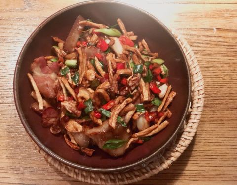 相信闽南人都对于这句话一点都不陌生,吃饭皇帝大,小时候总是会在餐桌听到父母辈跟自己提起这一句话。而这家店主打的是湘西菜,吐司酒大碗花菜,花菜带着孜然的味道特别的入味。土萝卜干炒肉,土萝卜炒着腊肉。辣辣的,却也很下饭,一口气吃掉了一碗饭。罐罐牛腩,打开的过程特别的有意思,牛腩的分量很足,汤汁拿来拌饭真的好吃。