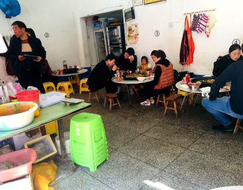 成都有钢管厂小郡肝,重庆有二碑刚厂红灯笼干锅,这些隐藏在老厂区里的美食,随着时间的不断逝去,不但没有跟老厂一样离开人们的视线,反而吸引了大批食客,不远万里前来品尝属于那个国营年代的美食。贵阳也有一些这样的美食,今天我去了车辆厂王幺孃洋芋粑。这是在整个贵阳市范围内以洋芋粑出名的老店子,已经开了二十几年快三十年。她们家洋芋粑据说从中午11点开始卖,一般卖到下午3点就结束了。为了保证能吃上,我10点就驱车前往,因为车辆厂在白云区,稍微有点远,到达的时候10点半,还没有开张,老板和店员都在紧张的吃午饭,准备一会儿的战斗。这家洋芋粑一直开在这个位置,最早开始只有一个灶台,由老板娘亲自上阵,烤洋芋粑,分给众人吃,后来因为生意好又多加了一个。这个店面是新店面,距离老店大概20米距离,因为里面多加了门面,可以多放几张桌子,所以搬到这里来的。但灶台一直是这个样子,大概二十年了吧,而且这个灶并不是煤气的,它是烧煤的,需要人为控制火候,一般人多的时候都是大火拼命滋滋滋的煎,速度很快。蘸料有三种,烧烤辣椒面、老板秘制甜面酱、酸萝卜。凭爱好自己DIY,推荐她们家甜面酱一定要尝尝,甜咸适口,不腻不咸,直接蘸料也很好吃。老板娘往两个灶台中间一坐,店子就正式开始营业了,洋芋粑是一种贵州小吃,煮熟的洋芋剥去皮,捏碎,成为泥,然后团成这样的小饼子,再用油煎,煎到两面金黄,皮面酥脆,就可以开动了,喊一声老板,我要啥啥,老板会飞快的用小铲子给你把看上的铲到你面前,插两下,方便取食。这家洋芋粑能卖二十多年是有它的道理的,整个洋芋粑入口软绵而不松散,还有一丝淡淡的咸味,就算不蘸料空口吃,也是极好吃的。配上喜欢的蘸料,这不知不觉就能吃掉很多啊! 我问了老板,她说她们家洋芋粑都是手工用擂钵舂制的,之所以每天只卖这么一小会,是因为每天他们都来不及做太多,因为纯手工,费时费力。而老板觉得能做好这间店就不错了,并不想开什么分店,所以,想吃请早,过时不候!这家店从九几年开始,靠洋芋粑、臭豆腐、魔芋豆腐这三样东西,配着炒三丝卖了二十多年,一直到去年才新加了一些其他菜品,所以这三种东西是到店必吃的!炒三丝也是推荐菜品,三丝指的是洋芋丝、莲花白丝和饵块粑丝。这三种软硬不同的东西炒在一起,口感奇异的搭配,还可以要求老板加火腿肠或香肠什么的。我们两个人吃了40块,已经撑到饭气攻心想睡觉了,看看菜单,真是良心实惠,我真诚的希望这家店还能继续好好经营二十年。最后说一下我的重大发现!你看,店里的这些桌子都是有人上菜,用菜单记录点单的。但是刚才外面的那个大灶台上,没有人记账!全靠老板娘心算,不管你自己一个人来吃,还是3人一伙,5人一群,不管你吃了多少,老板娘绝对不会记错,最后只要喊买单,老板娘会给你一个超级准确的数字,这技能好牛逼,真心服气! 这家店,作为老厂小吃的翘楚,我要给它80分,是值得开上1小时车专程跑过来吃的店。